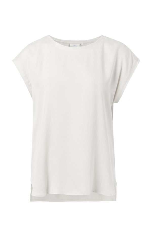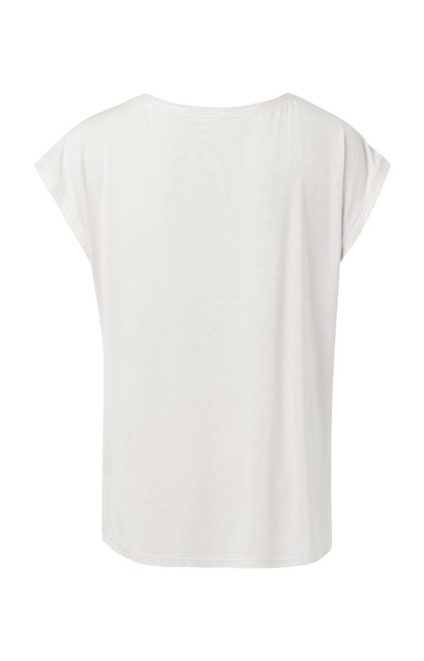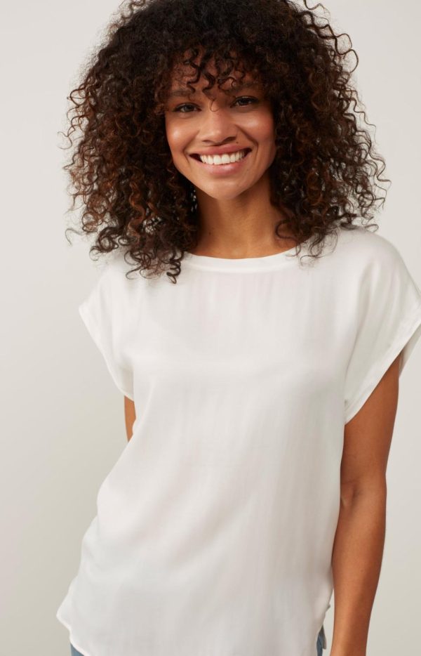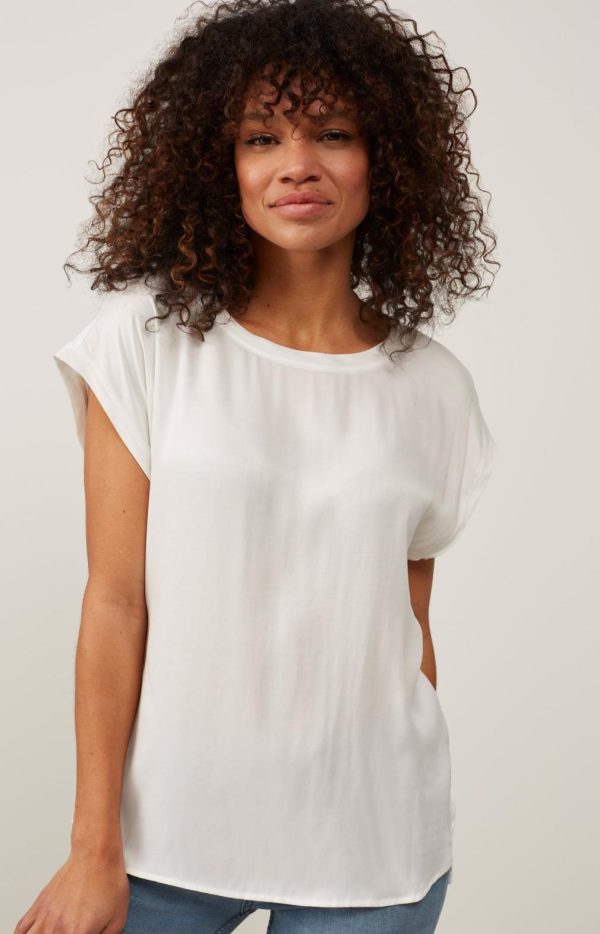Deze basic top heeft een ronde hals en korte kapmouwtjes. De top is gemaakt van een mix van stoffen, met een jersey achterkant en een soepele cupro voorkant voor een comfortabele, elegante look.