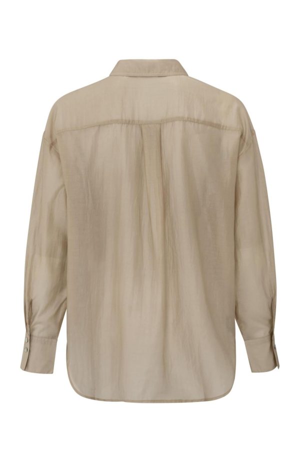Deze luchtige blouse heeft een losse pasvorm en een subtiele verborgen knoopsluiting voor een verfijnde look. De klassieke kraag en lange, licht gepofte mouwen met manchetten geven een elegante uitstraling. Gemaakt van een zachte, licht glanzende stof die soepel valt. Perfect te combineren met een pantalon of jeans voor een stijlvolle outfit. Het model is 176 cm en draagt maat 36.