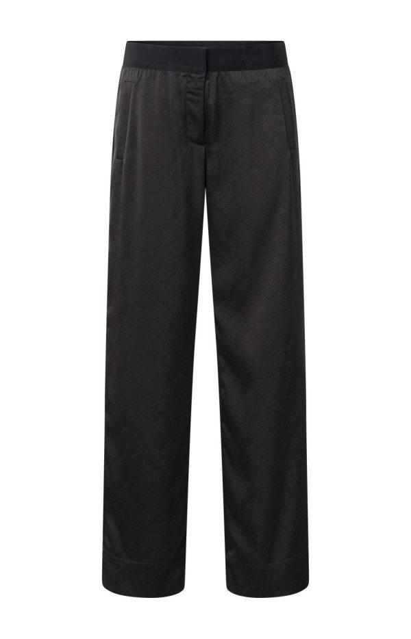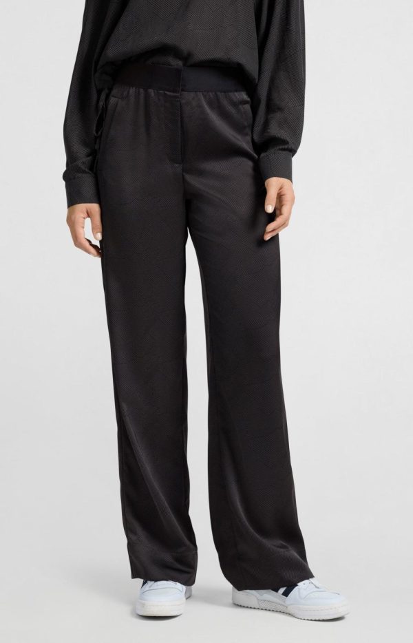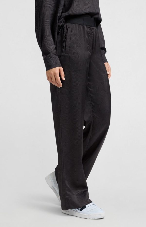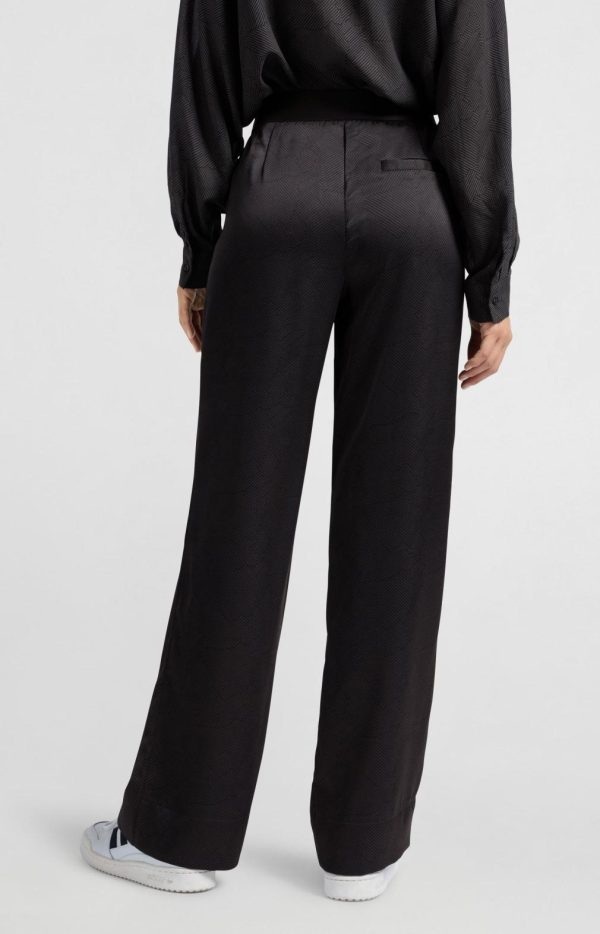 Deze stijlvolle broek is gemaakt van een soepelvallende, geweven stof met een subtiele print. De wijde pijpen en elastische tailleband zorgen voor een comfortabele en elegante pasvorm. Perfect te combineren met de bijpassende blouse of een basic top voor een moeiteloos chique look. Het model is 176 cm en draagt maat 36.