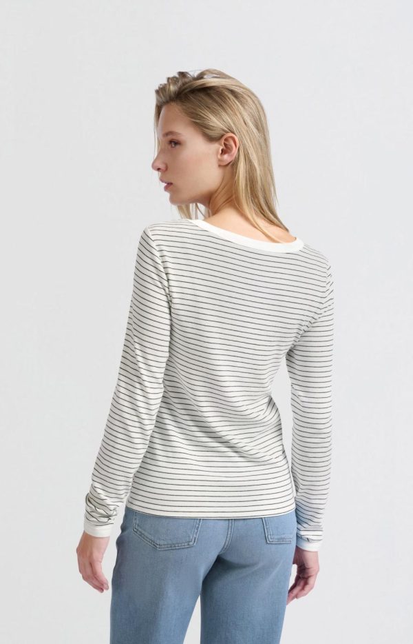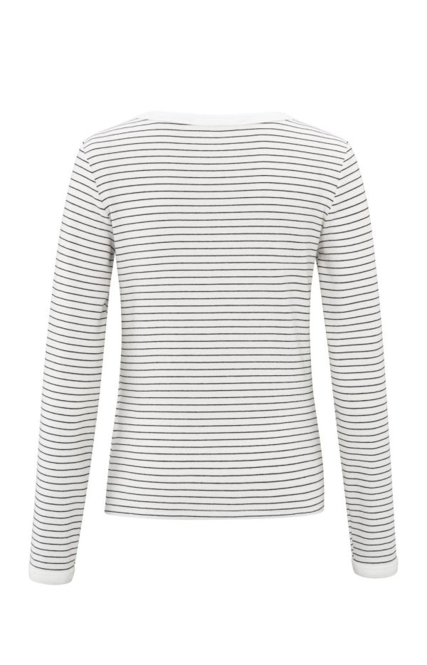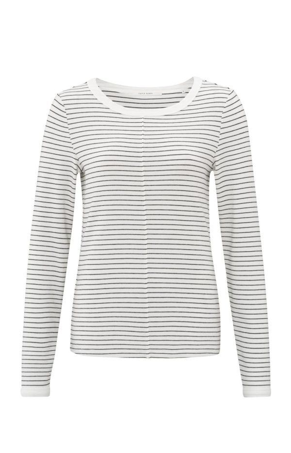 Deze casual gestreepte top is gemaakt van een zachte stof en heeft lange mouwen, een ronde hals en een aansluitende pasvorm. Het subtiele streepje door het midden voegt een uniek detail toe aan het klassieke ontwerp. Combineer met je favoriete jeans voor een tijdloze en stijlvolle look. Het model is 176cm en draagt maat S.