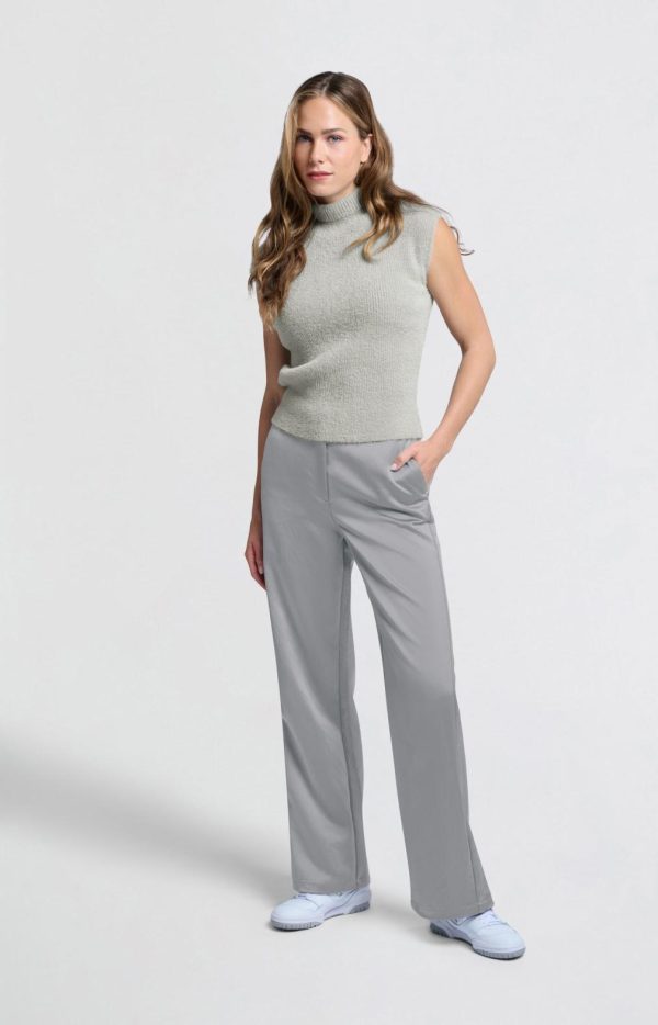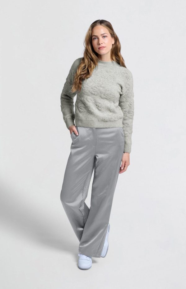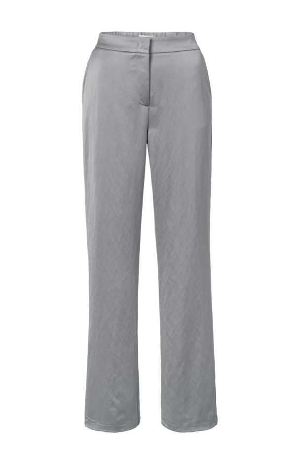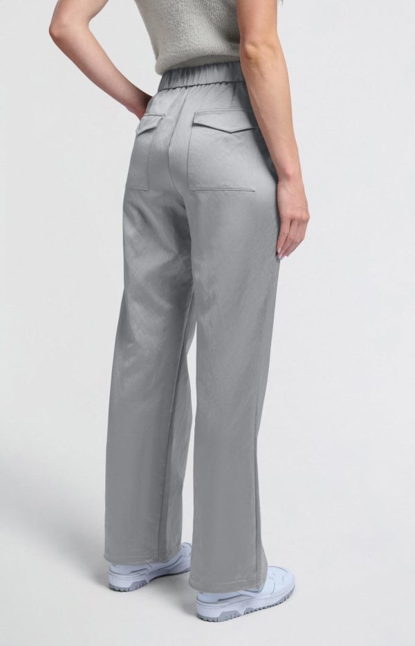 Geweven Satijnen Broek Met Wijde Pijpen En Zakken Light Metal Grey | Dames YAYA Broeken
