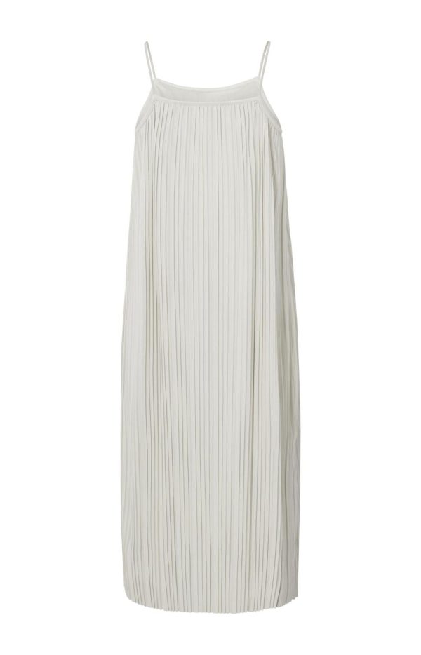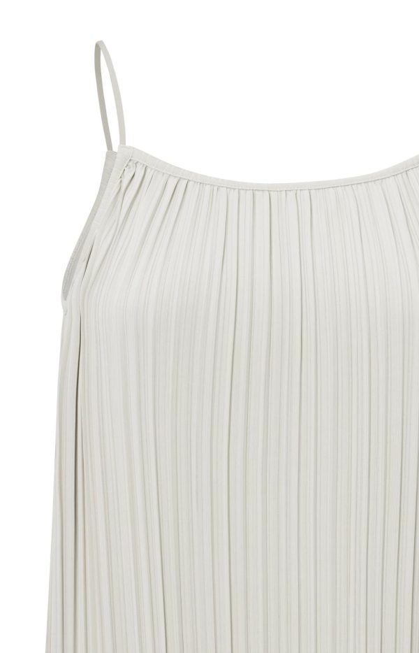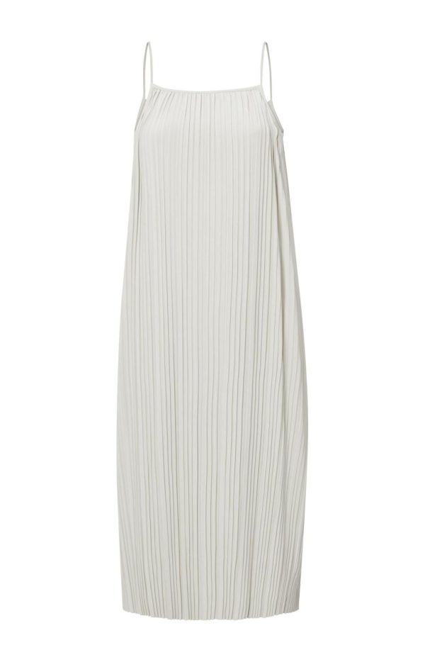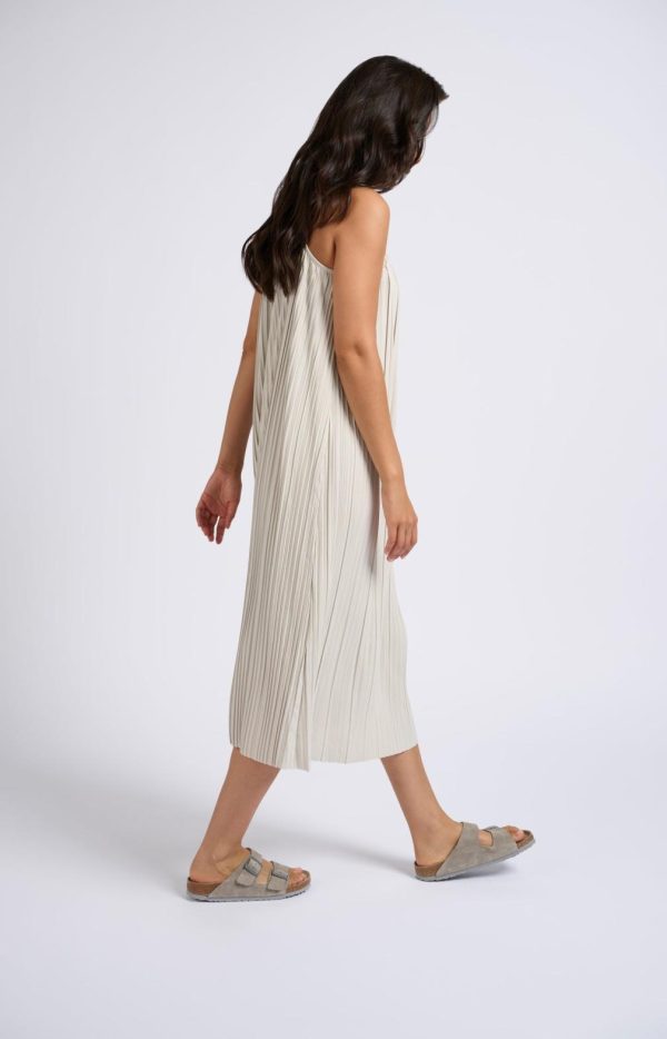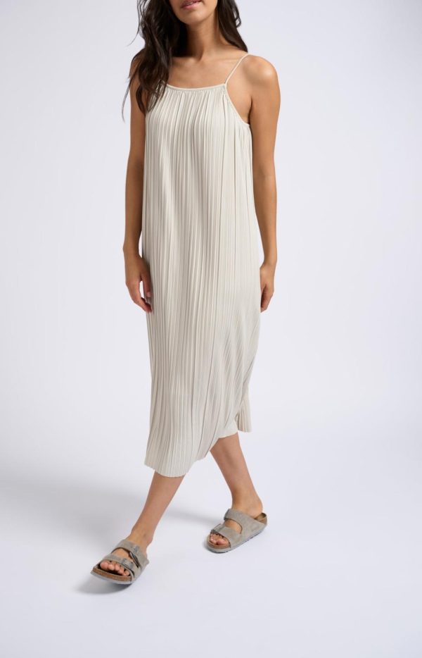 Een elegante plissé jurk die is ontworpen in een wijd uitlopende pasvorm, die de jurk flowy effect geven, perfect is voor zomerse dagen. De jurk heeft dunne bandjes die zorgen voor een chique touch. Voeg een taille ceintuur toe voor een meer getailleerde look. Het model is 177cm en draagt een maat 36.