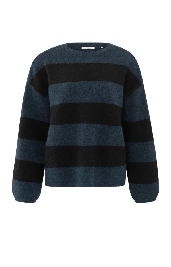 Deze comfortabele oversized trui heeft een ronde hals en lange mouwen. De horizontale strepen geven een speelse uitstraling. Gemaakt van een zachte materialenmix, voelt de trui heerlijk aan op de huid. Perfect om casual te dragen en te combineren met een jeans voor een nonchalante look. Het model is 178cm en draagt een maat 1.Dit betreft een oversized model, indien een strakkere pasvorm gewenst is, raden wij aan een maat kleiner te bestellen.