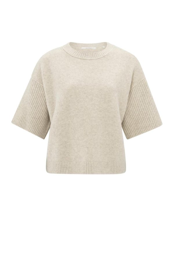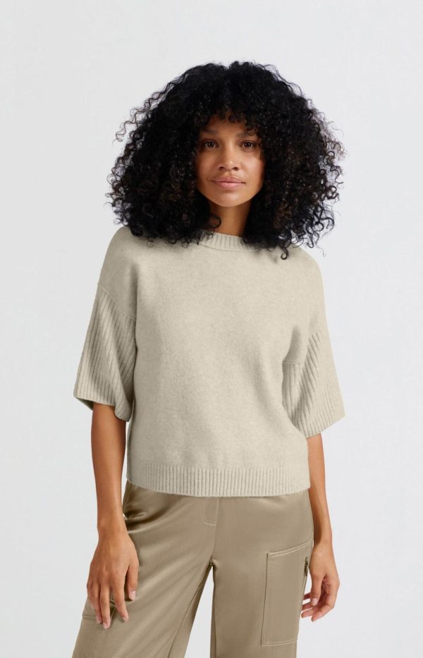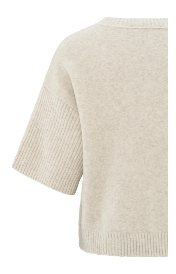 Trui Met Ronde Hals En Korte Ribgebreide Mouwen Light Beige Melange | Dames YAYA Truien